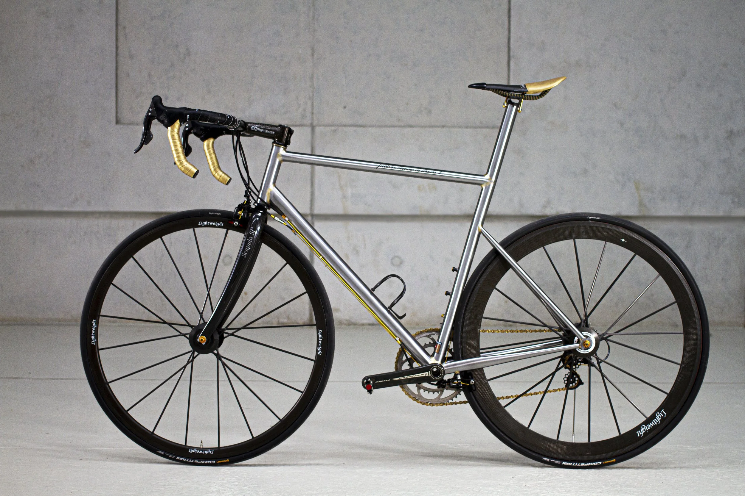 Comfortable Endurance geometry out of the Columbus SPIRIT tube set with complete internal cable management. Equipped with the CAMPAGNOLO Ekar groupset and a handmade wheel set to guarantee reliability at all events.